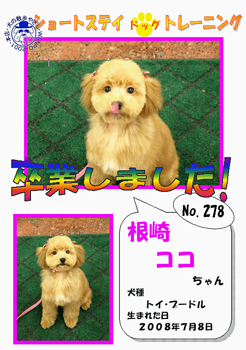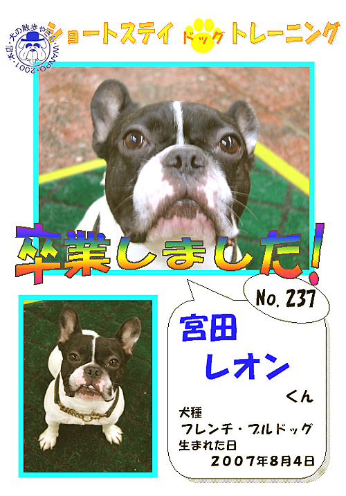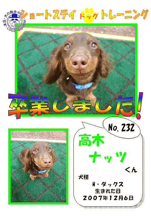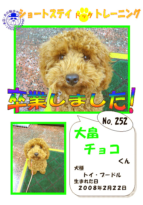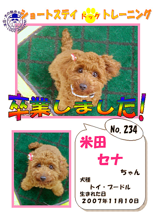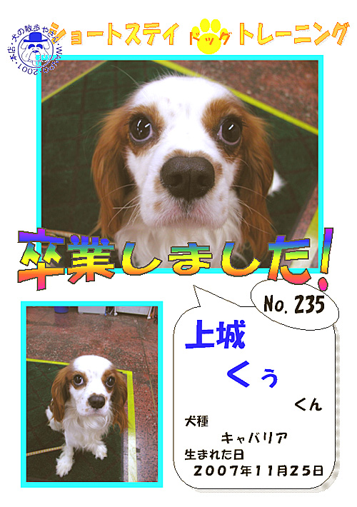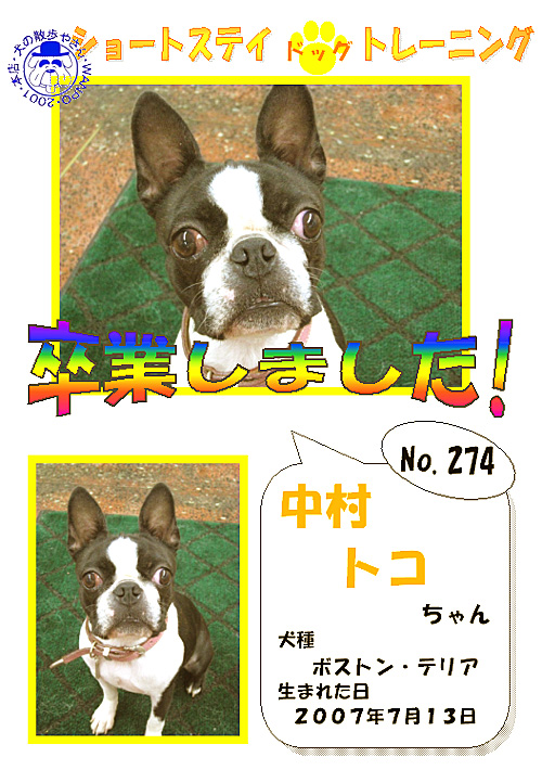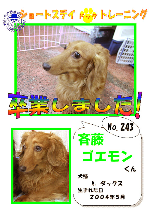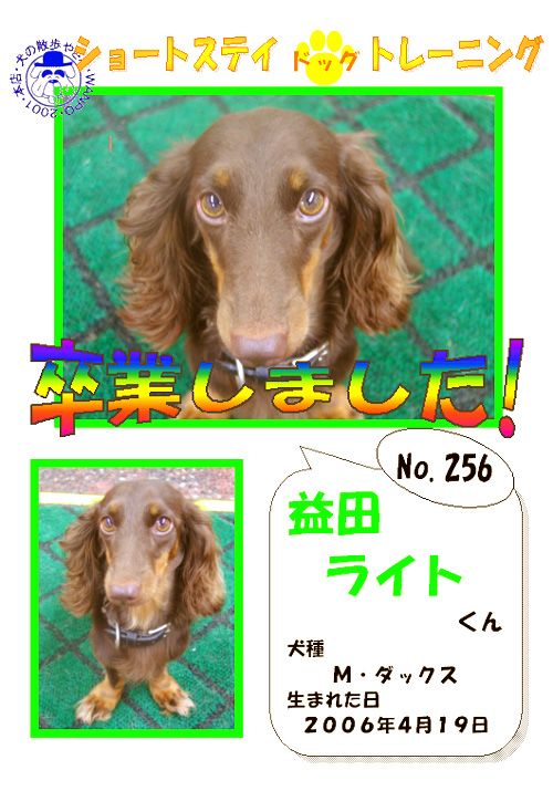 こちらではショートステイ・ドッグトレーニングを卒業したワンちゃんたちを一部ご紹介させていただきます。みんなとってもおりこうさん!