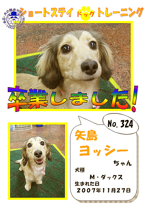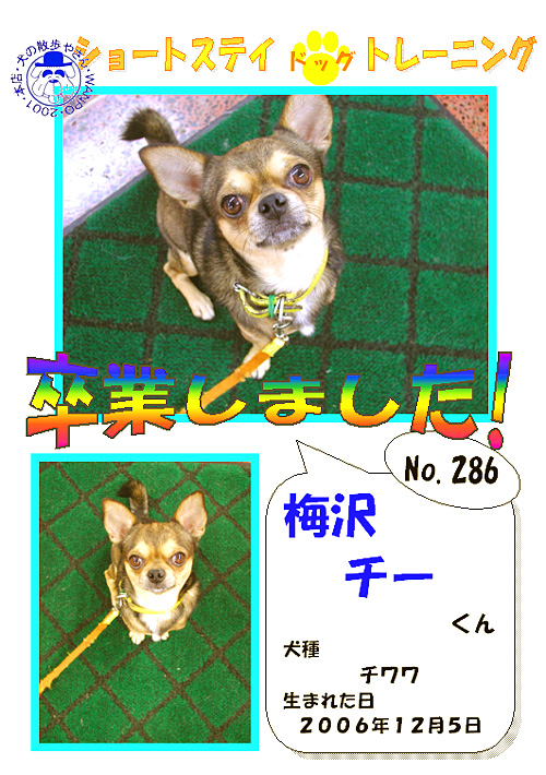 こちらではショートステイ・ドッグトレーニングを卒業したワンちゃんたちを一部ご紹介させていただきます。みんなとってもおりこうさん!